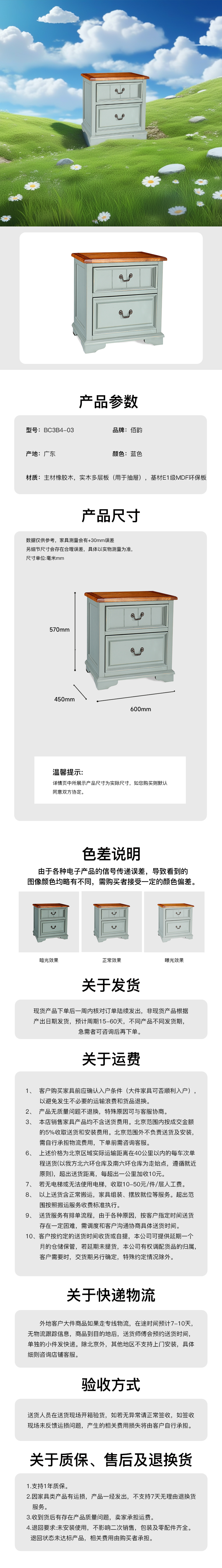 床頭櫃-蜜蜂色/法國藍主材白蠟木實木 BC3B4-03