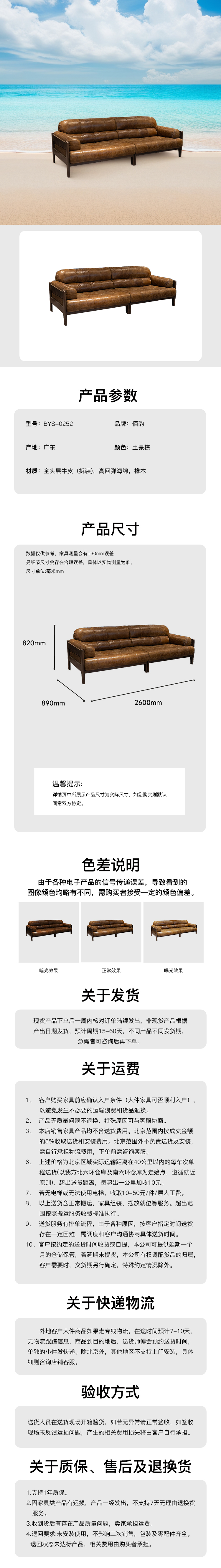 主材:土豪棕-頭層牛皮(拆裝),海綿,橡木架
